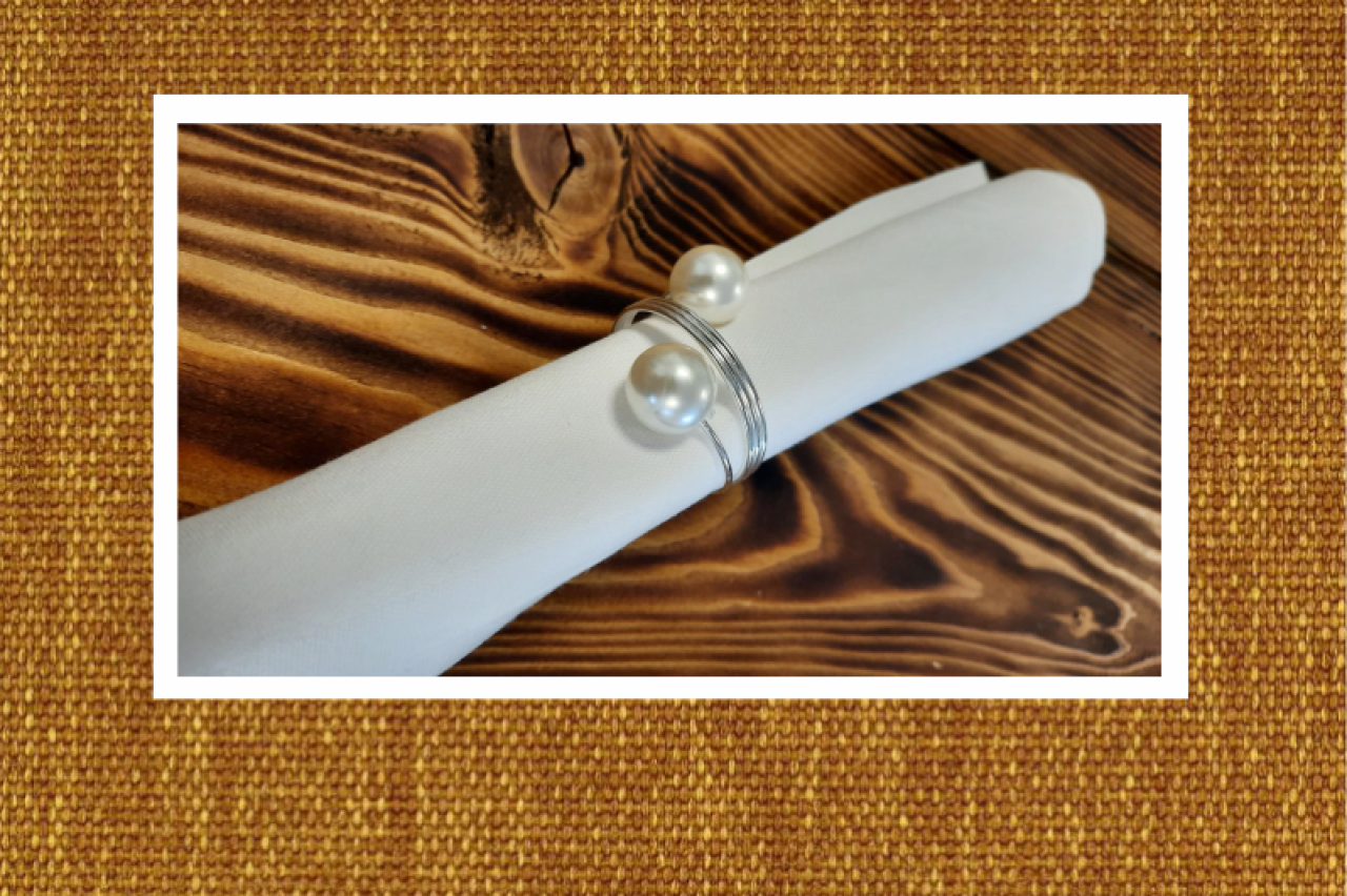 Serviettenring, als Spirale geformt mit zwei Perlen am Ende, ohne Reinigung, Miete 3 Tage